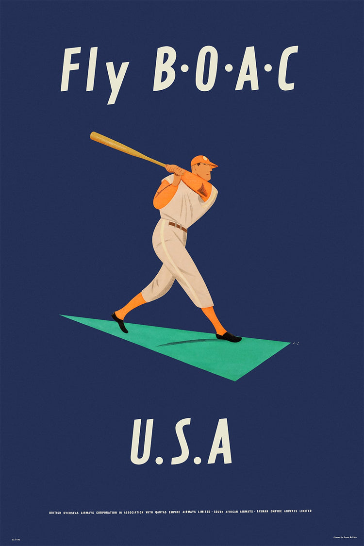 USA, Fly there by B.O.A.C., 1950s. [Baseball]