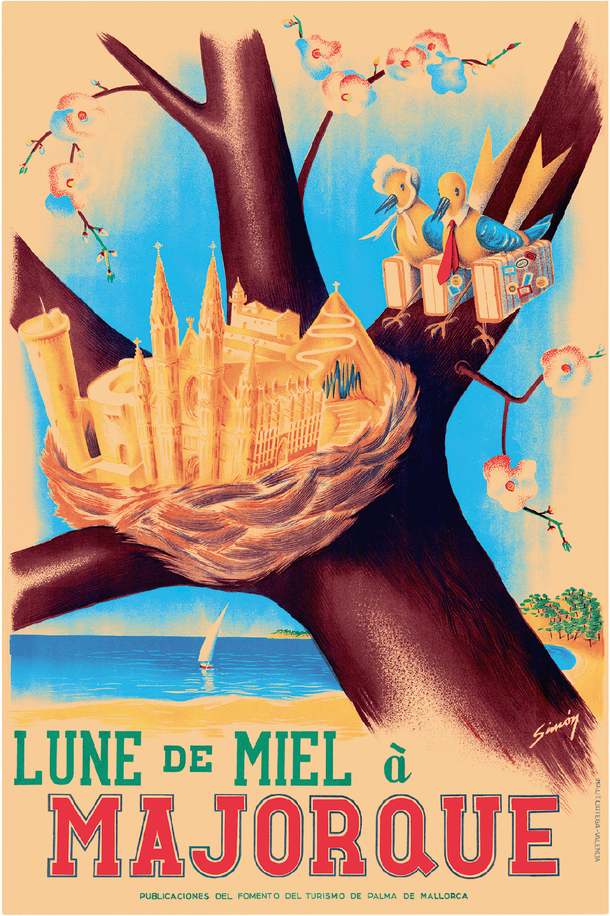 Majorica Hotel, Palma de Mallorca, 1950s. This charming, mid-century vintage marketing artwork...