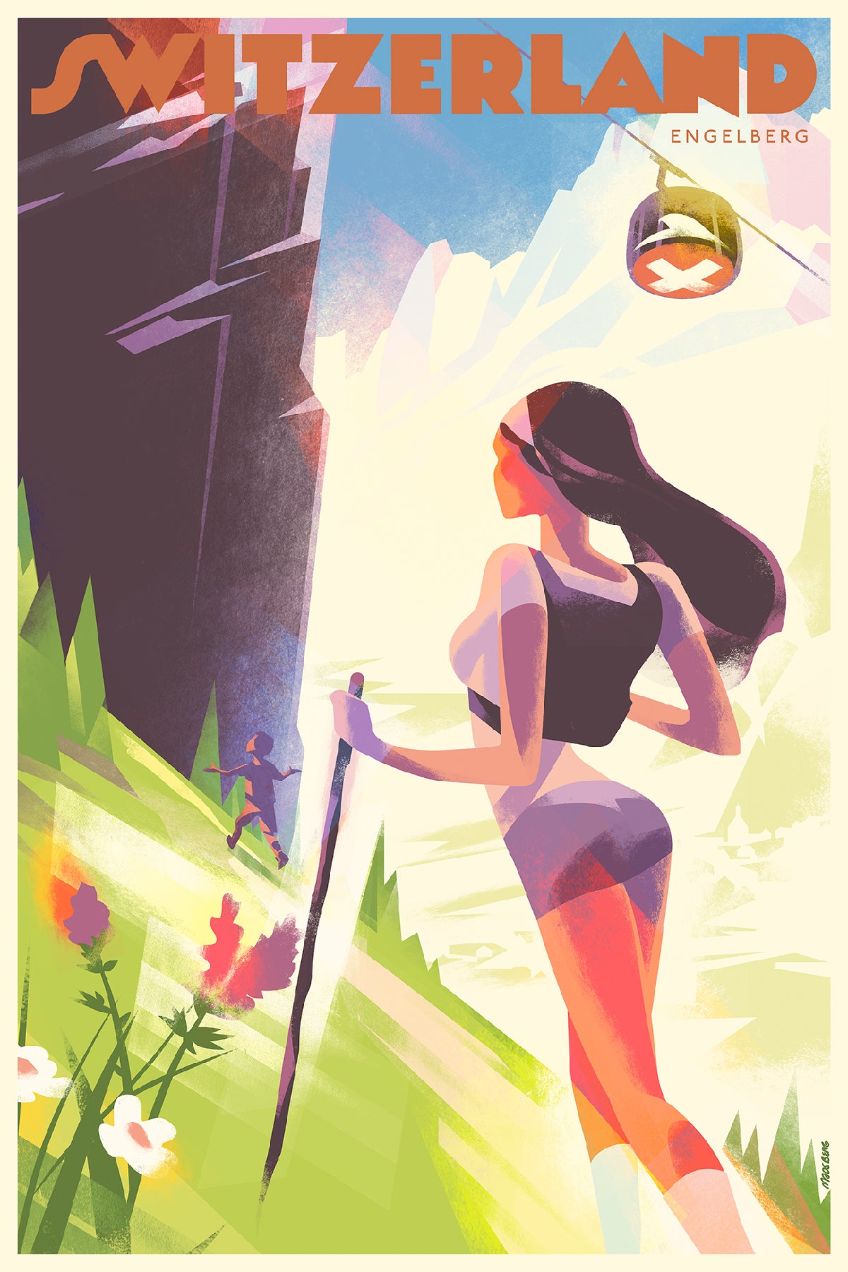 Hiker, Engelberg, Switzerland. Enjoy the appeal of the Alps all year round...