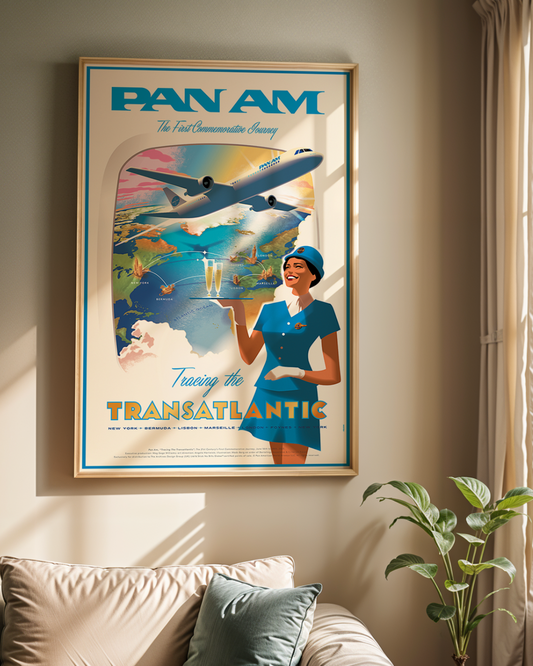 Presenting our latest exclusive commemorative poster artwork to celebrate the Pan Am brand returning to the skies; Pan Am, Tracing The Transatlantic is a spectacular collector's edition and modern addition...