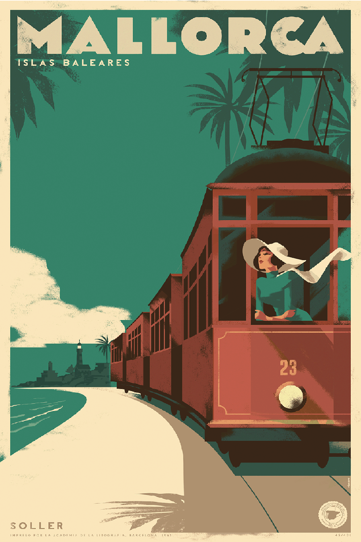 Stick No Bills presents the ultimate poster collection for Mallorca enthusiasts! Featuring the famous Soller Tram, feel transported to Mallorca and experience the cool mountain breeze as the sun sets over Puerto De Soller with this best selling poster. Enhance your interior decor with this must-have artwork. Shop now and bring the beauty of Mallorca to your home with Stick No Bills.