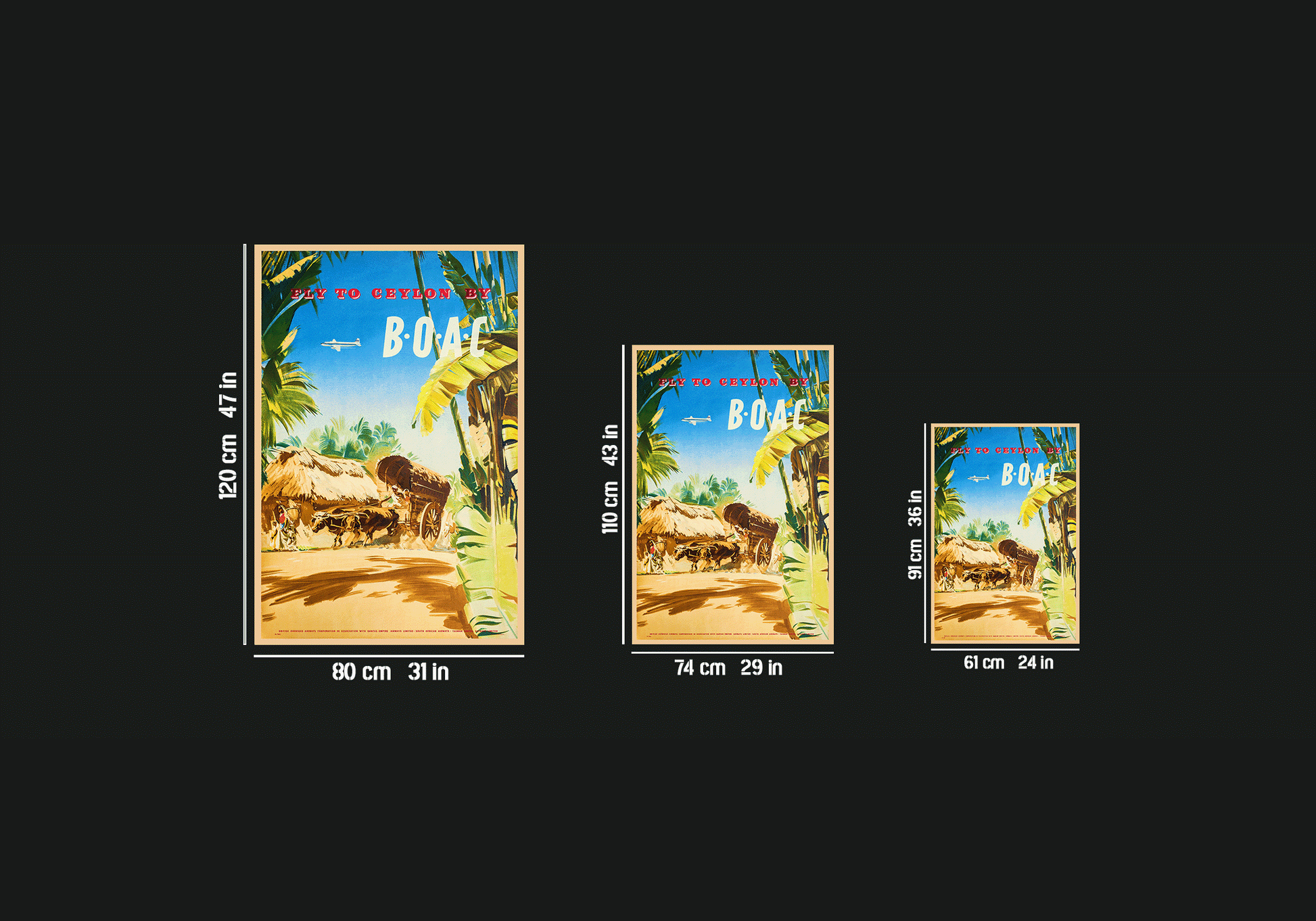 Experience the beauty of Sri Lanka with our stunning poster collection. Our remastered print of "Fly to Ceylon by BOAC" captures the vintage charm of this iconic destination, bringing the spirit of adventure to your home or office space. These posters are the perfect addition to any travel enthusiast's collection, offering a timeless reminder of the beauty of Sri Lanka. Shop now at Stick No Bills and find the perfect poster for your collection.