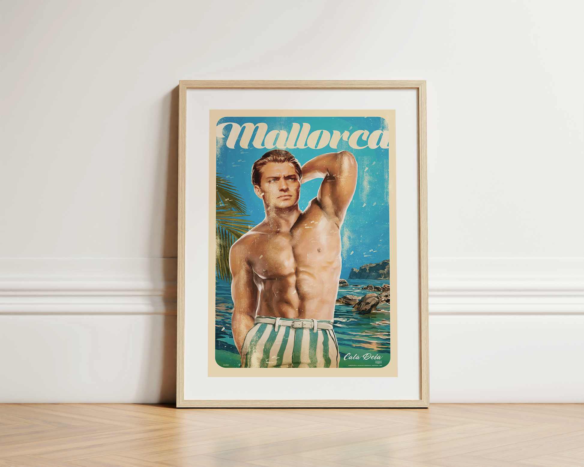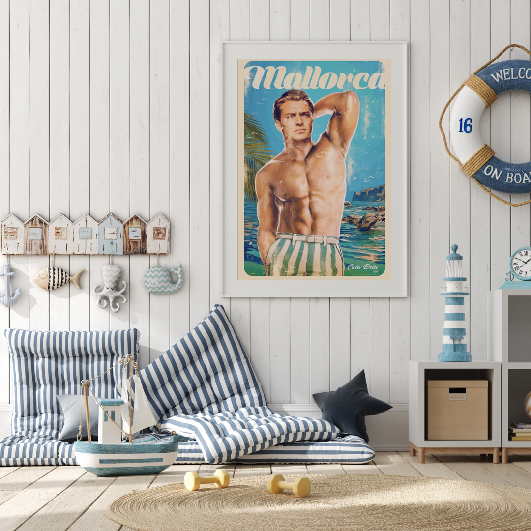 Bring the magic of Mallorca into your home with our stunning poster collection. Our print features the handsome 'Nico' posing at the beach in a blue and white striped swimsuit, set against a backdrop of vibrant colours that would light up any room. Based in the beautiful village of Deià in the 1960s, this poster captures the relaxed, carefree spirit of the era. These posters are the perfect addition to any home or office space, adding a touch of timeless elegance to your decor. Shop now at Stick No Bills and find the perfect poster to add to your collection!